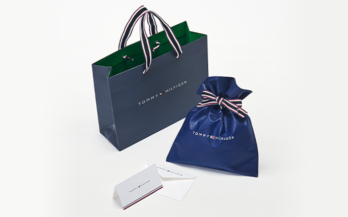 ロゴ入りギフトバッグでラッピングアイテムサイズに合ったギフトバッグとトミーカラーをあしらったリボンで丁寧にお包みします。 お届け先の住所はご希望に応じて変更ができ、直接お会いできない方への贈り物にもご利用いただけます。 「ギフトラッピングする」を選択された場合、明細書と商品タグには金額が印字されませんのでご安心ください。 ※「ラッピングキット同梱する」を選択された場合、金額が印字されますのでご注意ください。