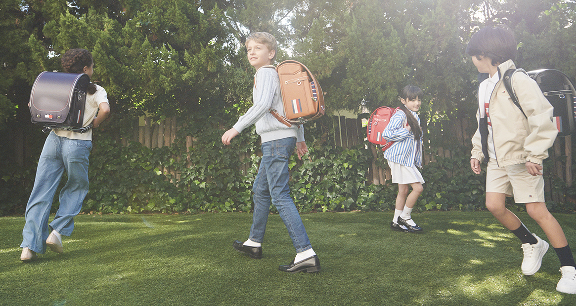 美しく舞い降りる桜の花びらに祝福されて、小学校の門をくぐる1年生。お子様たちは大きな期待とちょっぴり不安な気持ちを背負って、新しい世界へと飛び出していきます。行動範囲がどんどん広がり、日々のあらゆる体験が学びとなる6年間。背負っているだけで元気が出て、安心して登下校ができるようなランドセルをその背中に届けたい。『TOMMY HILFIGER RANDOSERU FLAG』は、洗練されたファッション性はもちろん、遊び心をくすぐるトミー ヒルフィガーらしいデザイン、さらに登下校の安全性や快適性を大切にしました。お子様の未来へとつながる6年間にしっかりと寄り添います。