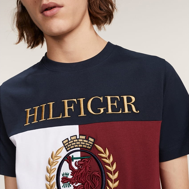 今年でブランド創設35周年を迎えたトミー ヒルフィガー。こちらはハイエンドラインでもある「ヒルフィガー コレクション」の一枚で、フラッグロゴをモチーフとしたボディパターンに、大胆な刺繍でコレクションラインのシグネチャーであるヒルフィガークレストをあしらいました。さらに〝HILFIGER COLLECTION〟の文字も刺繍で表現し、豪華な雰囲気を後押し。絶大なインパクトを放ちつつも、さまざまなパンツに合わせられる絶妙なデザインが魅力です。上質なコットンによる滑らかな肌触りも着用時の気分を上げてくれます。