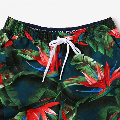 大胆で鮮やかな発色のボタニカル柄が夏らしさをアピールするボードショーツ。左の裾付近にフラッグロゴを、バックポケットの上にブランドのロゴラベルをデザイン。Tシャツや薄手のニットを合わせれば、ビーチだけでなくタウンユースの着こなしにも対応してくれます。ウエストはサイズ調整が可能なドローコードを装備。