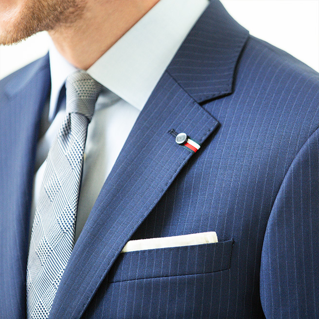 春夏でも大好評を博した革新的素材「TH Flex」を採用したスーツ。ネイビーベースに明るいブルーのストライプを差し込んだ表情が爽やかな印象で、程よい光沢による大人感も持ち合わせている新作。シルエットはジャケット、パンツともにスリムフィットのすっきりライン。これほど上品かつ洗練された雰囲気ながら「TH Flex」による360度伸びる抜群のストレッチ性を誇るため、オフィスはもちろんテレワークでも超快適な着心地を約束します。着こなしは、サックスブルーのシャツとグレートーンのタイで統一感を表現。シグネチャーカラーのラペルピンも静かに主張する洗練スタイルを完成させてくれます。カジュアル合わせの振り幅も広く、オン・オフ力を備えているのも魅力的。