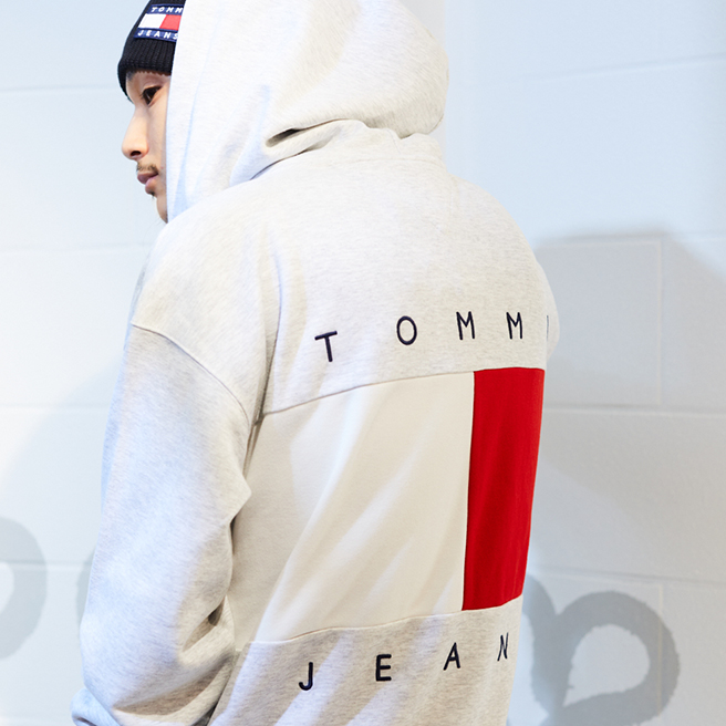 毎シーズン人気を博すトミー ジーンズのカプセルコレクション。今シーズンはブランド35周年を記念し、90’sのヒップホップやストリートスタイルにエッジをプラスした「Street Archives カプセルコレクション」が登場。取り扱いはキャットストリート店と公式オンラインストアのみの限定展開。クラシカルな雰囲気漂うフラッグ使いや大胆なカラーブロックデザインなど、懐かしさと新しさの融合は、モダンストリートスタイルを象徴する仕上がりに。注目コレクションの中からピックアップしたアイテムを軸に、トミー ジーンズ キャットストリート店のスタッフが旬のコーディネートを提案します。