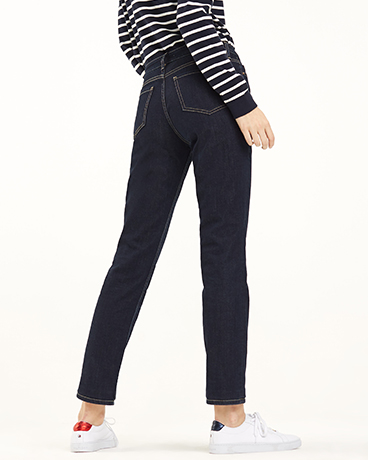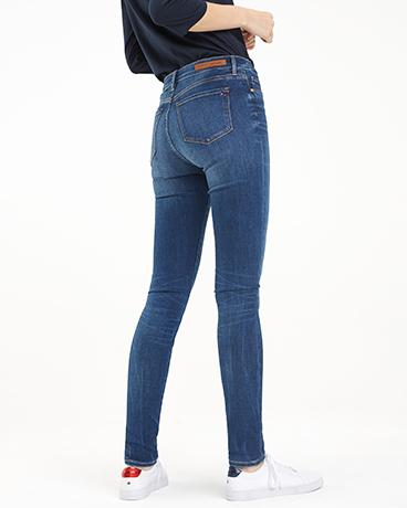 今季から定番ラインに仲間入りする注目のスキニージーンズ。膝下が細く、非常にキレイなシルエットでいつでもスラリとした美脚ラインをキープ。ストレッチが効いているためはき心地は抜群で、自然な色落ち加工による適度な抜け感もアピールできます。コンパクトなトップスをインするのはもちろん、レギンス感覚で長めのワンピースを合わせたメリハリコーデもオススメ。スニーカーやパンプスなどシューズを選ばない万能さも人気の秘密です。