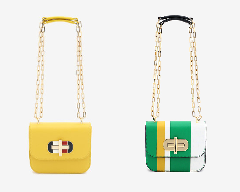 トレンドカラーの中でも特に注目されているのが、イエローやグリーンのエネルギーカラー。コンパクトなチェーンバッグに落とし込むことで、気軽に持てるアイテムに仕上げました。フラップのターンロックも目を惹き、存在感が抜群。カラーコーデとの相性はもちろん、ニュートラルカラーのコーデにプラスすれば差し色として効果的です。
