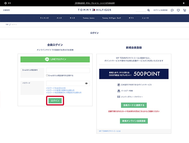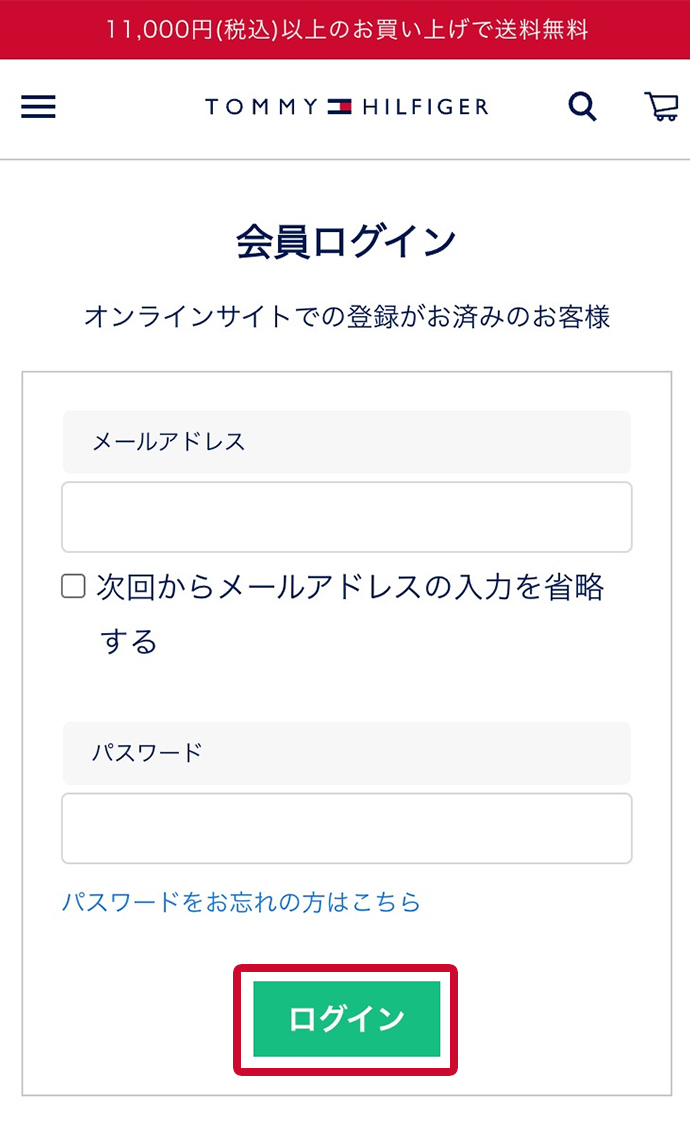 2. 会員ログイン部分にメールアドレスとパスワードを入力してログインをクリック