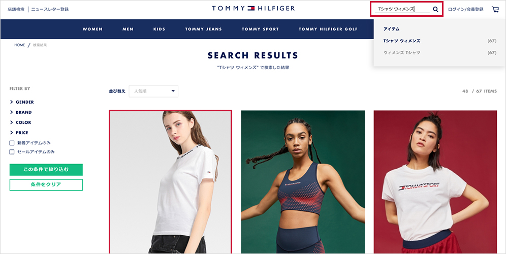 1.公式オンラインストアの商品検索ボックスにてご希望商品をフリーワードで検索してください。