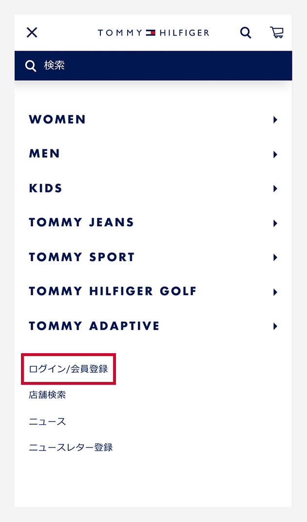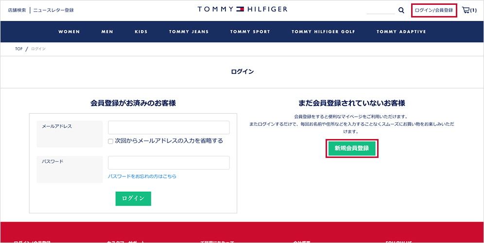 1.サイト右上の「ログイン/会員情報」をクリックしてログインページに移動します。