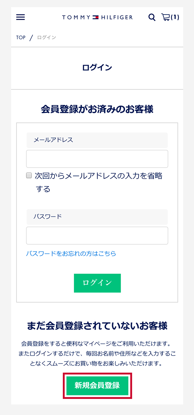 「新規会員登録」ボタンをクリックしてください。1.メニューから「ログイン/会員情報」をタップしてログインページに移動します。
