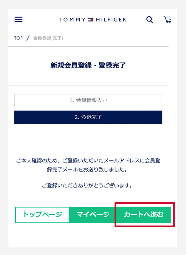 「カートへ進む」をクリックタップして「STEP3.クーポン登録」へ進んでください。