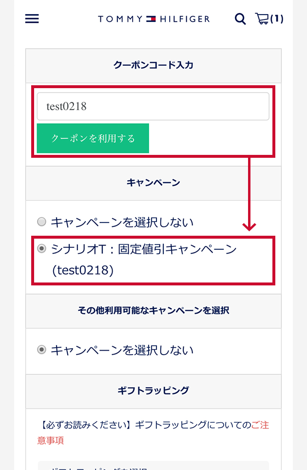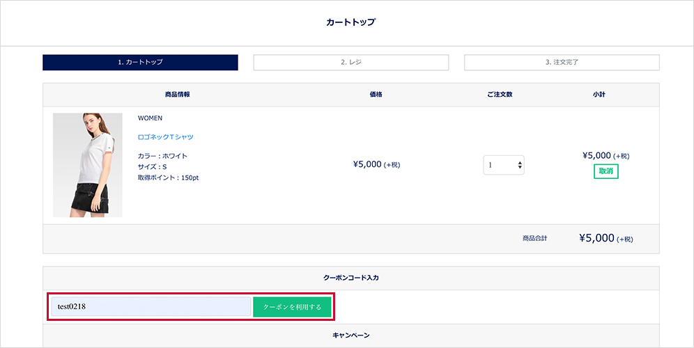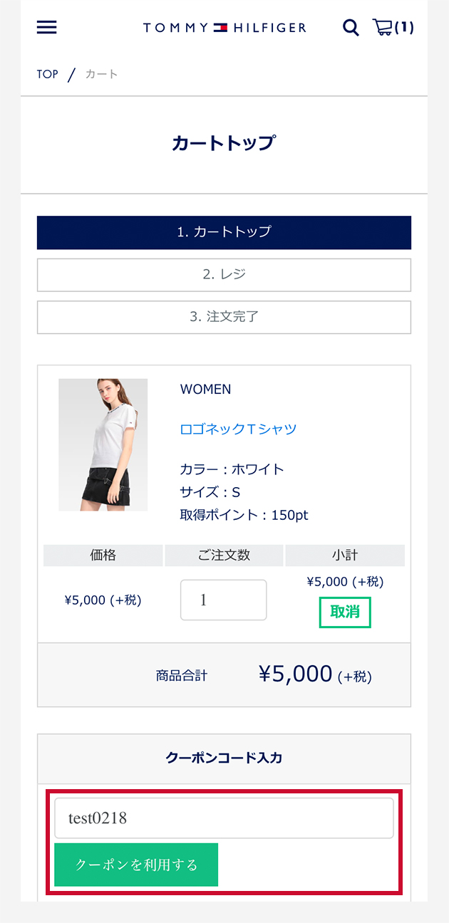 1.クーポンコードをお持ちの方は、カートページに移動して、クーポンコードをご入力ください。