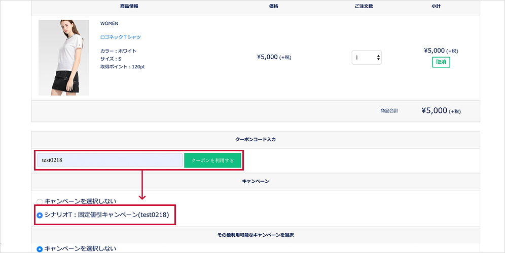 2.クーポン登録が完了すると、クーポン名がキャンペーン欄に表示されます。