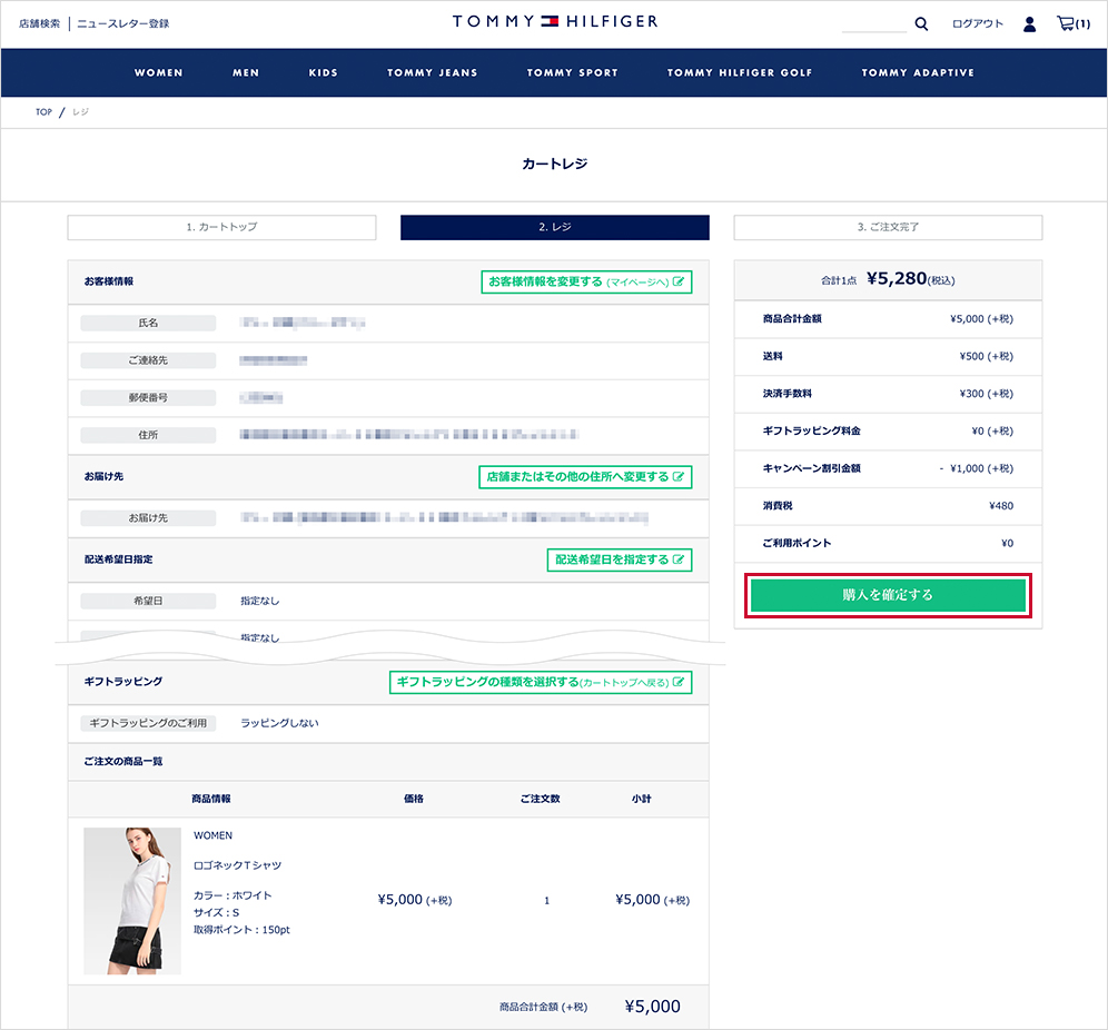 注文内容および入力内容をすべて確認、間違いなければ「購入を確定する」ボタンをクリックタップしてください。