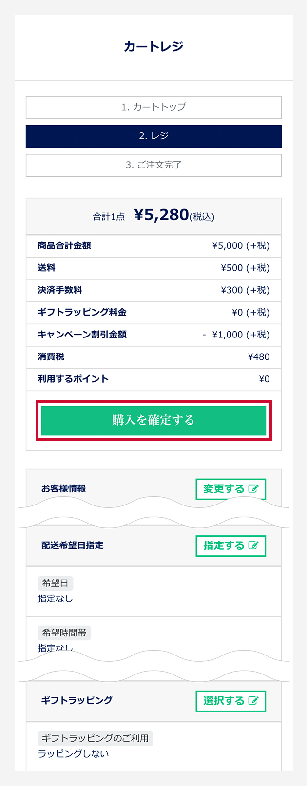 2.お届け先情報の確認、お支払い方法および配送日・ギフトラッピングをご指定ください。