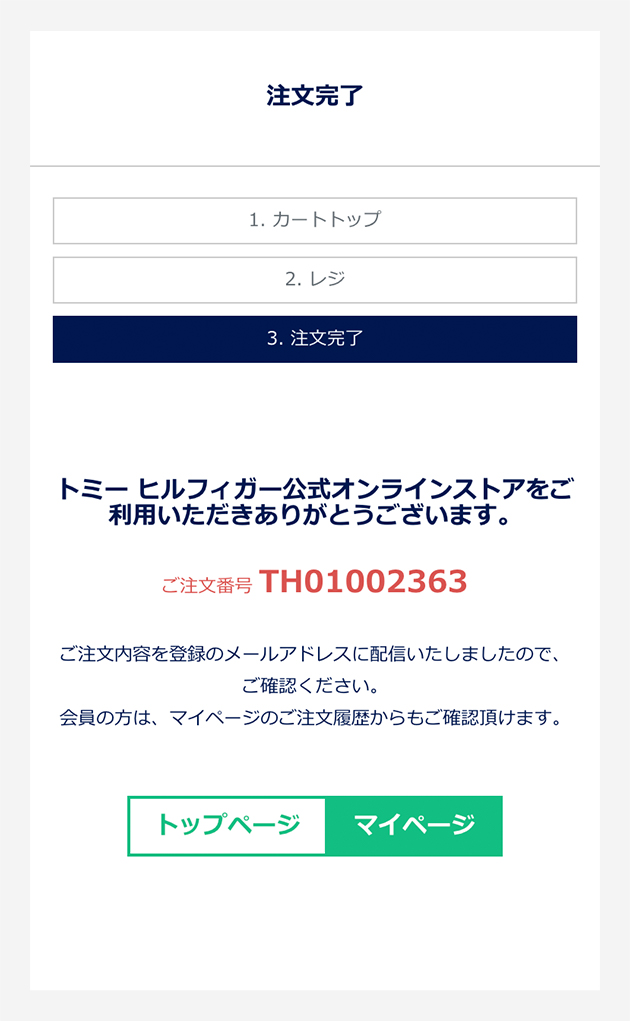 3.ご登録いただいたメールアドレスに注文完了メールが配信されますのでご確認ください。